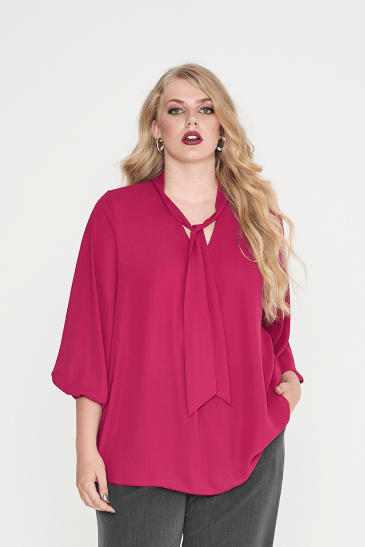 Esta blusa presenta un lazo en el cuello, añadiendo un toque sofisticado y moderno al diseño.