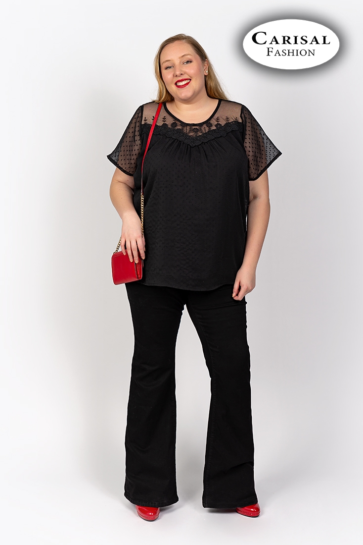 En resumen, la Blusa con transparencia negra es mucho más que una simple prenda de vestir. Es una declaración de estilo y sofisticación, diseñada para mujeres que destacan con elegancia en cada momento. Además, gracias a  su diseño innovador y su versatilidad para adaptarse a diferentes outfits, esta blusa se convierte en una pieza imprescindible en cualquier guardarropa de moda.