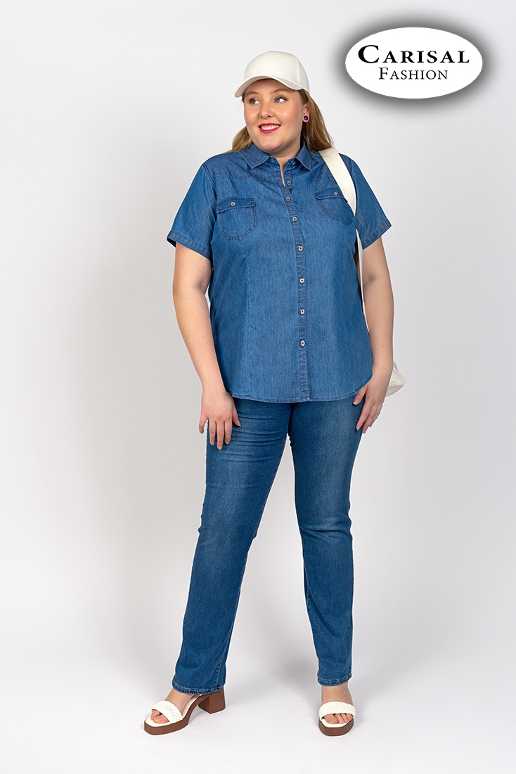 En resumen, la Camisa manga corta vaquera es un básico imprescindible que no debe faltar en tu armario. Y la opción de Carisal te ofrece un ajuste perfecto en tallas grandes y una caída suave que dinamiza tu figura. Apuesta por el diseño versátil, cómodo y elegante de esta camisa que te acompañará en todas tus aventuras con estilo y frescura.